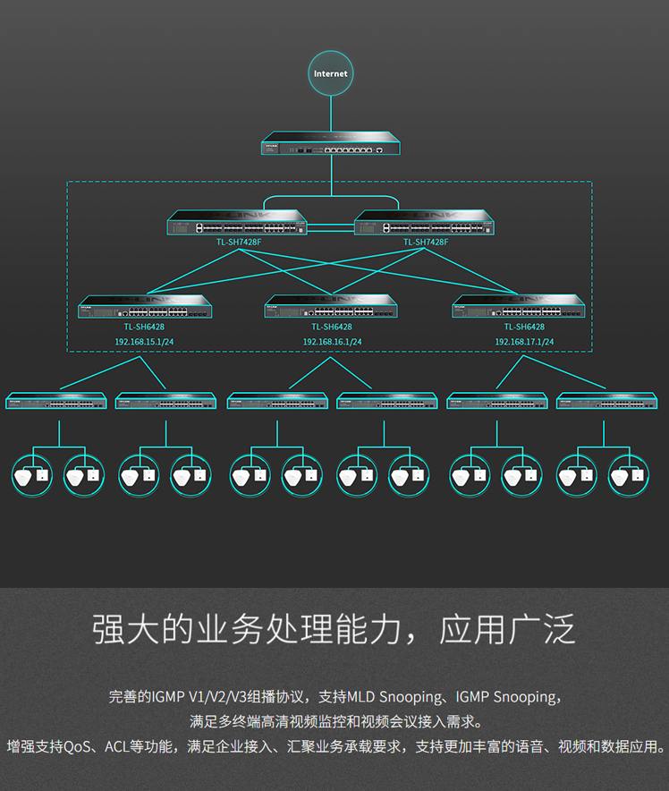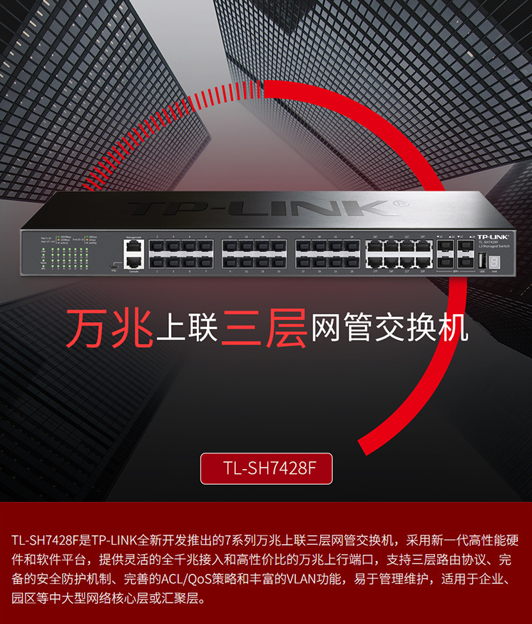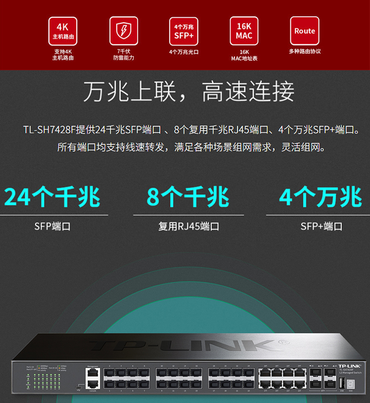 以太網(wǎng)交換機普聯(lián)/TP-LINK全千兆24口三層網(wǎng)管型交換機IPV6核心層4光口SFP端口匯聚 TL-SH7428F/臺